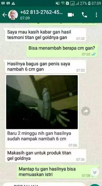 Berkat bahan aktif titan gel gold tidak hanya bertambah panjang tetapi juga menambah besar.